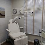 Een lichte werkkamer met behandelstoel, compacte wachtruimte en toilet. Rollator-toegankelijk, begane grond.